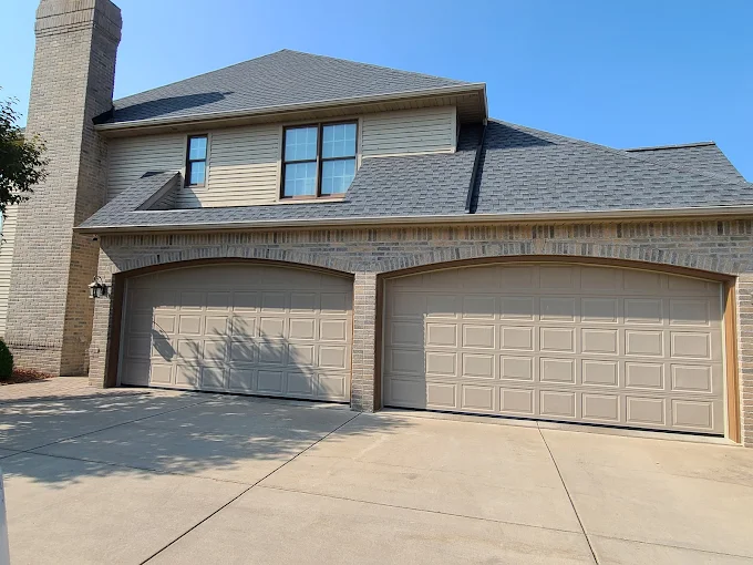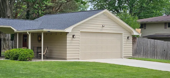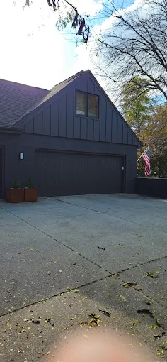 Crisp lines and solid coverage are our trademarks. This garage and home exterior looks better than new with a modern dark finish. We are proud to serve the Saginaw and Midland areas.