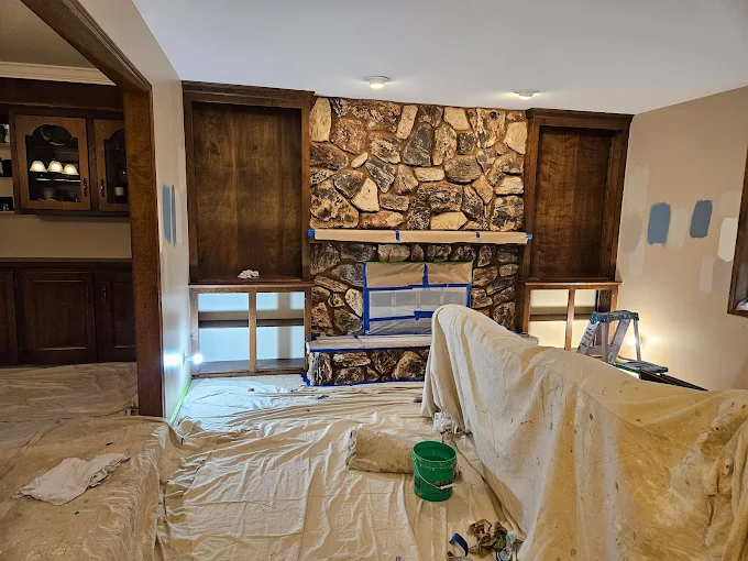 Prep work is in full swing here! We ensure everything is protected before we paint walls or ceilings. If you want a worry-free painting experience, give us a call.