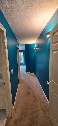 Bold interior colors add personality to your hallways and rooms. We achieved smooth, even coverage on these teal walls for a fun, energetic look.