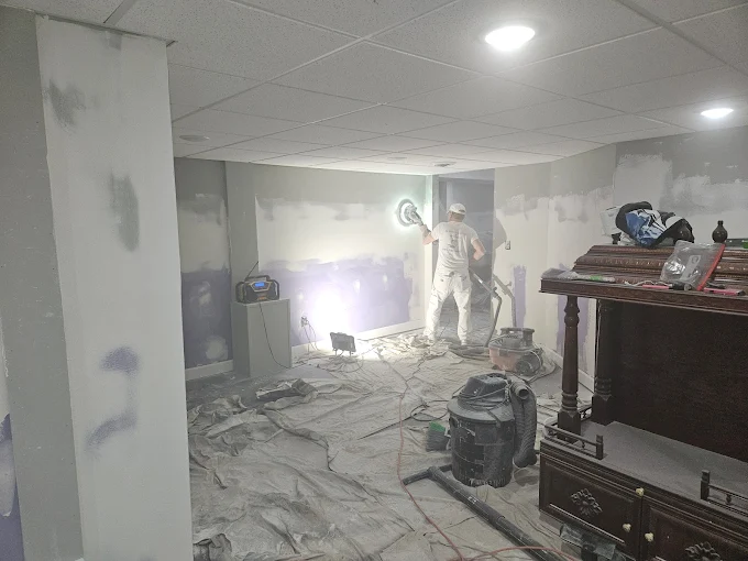 From drywall repair to the final coat, we handle it all. We are prepping this basement area to transform it into a usable living space.