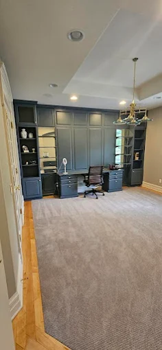 This study is the definition of high-end. We painted these built-ins in a rich, deep tone to create a sophisticated library vibe. If you want a luxury look for your home, choose Lesage Painting & Finishes.
