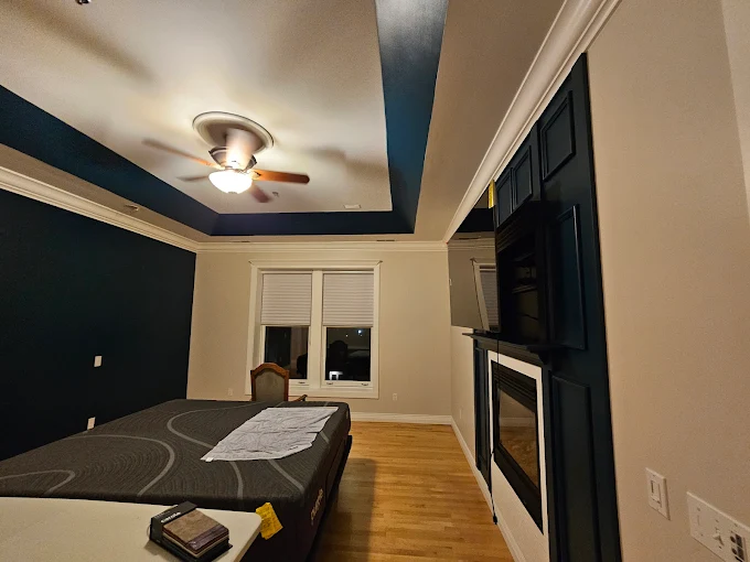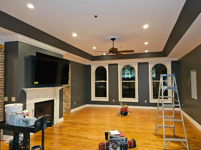 We are hard at work ensuring this room gets a flawless finish from the ceiling down. We use premium materials for smooth, consistent coverage.