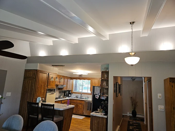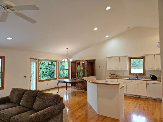 This view from the dining room shows how a fresh paint job ties the whole level together. We specialize in interior repainting for homes in Saginaw and Frankenmuth.