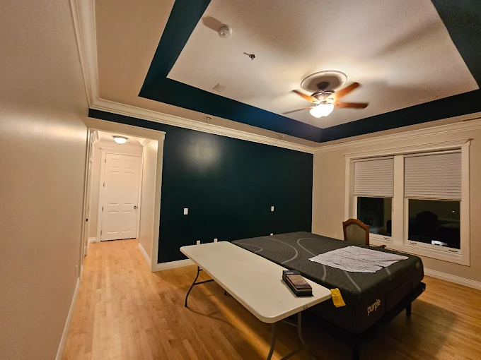 Interior painting is all about the details. We cut in perfectly around the ceiling and trim to let this teal color shine without any messy lines.
