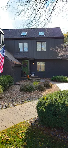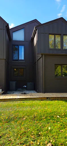 Another angle of this sleek dark exterior transformation. We use premium paints that resist fading, so your home stays looking sharp year after year. Satisfaction guaranteed.
