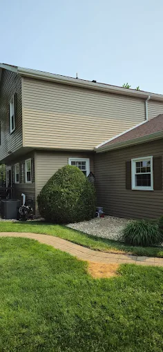 This blue siding with crisp white trim offers such a classic, welcoming vibe. 🏠 We take pride in helping homeowners in Mid-Michigan achieve the perfect curb appeal.