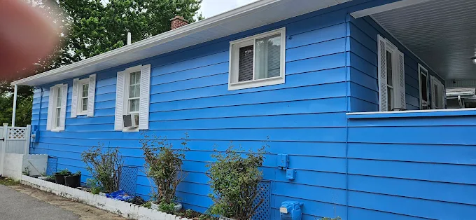 Who says you have to stick to beige? We loved applying this vibrant blue to make this cottage stand out. 🏠 If you are ready for a bold color change, give us a call.