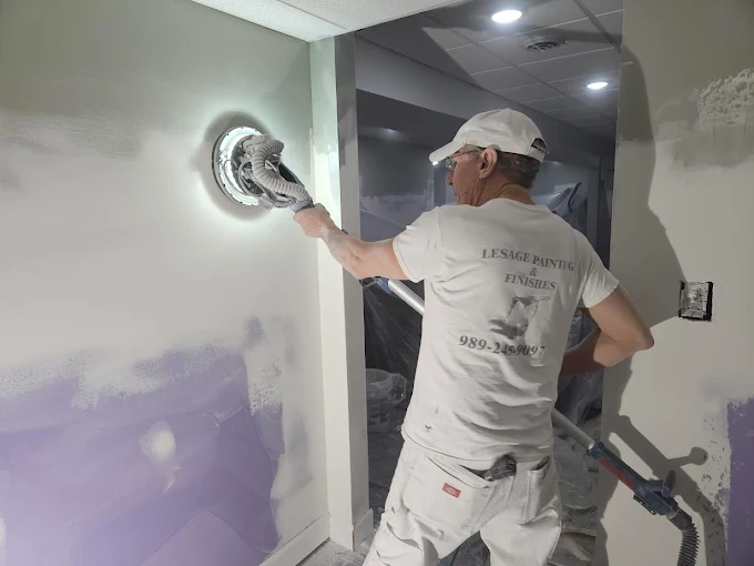 The secret to a perfect paint job is in the prep. 🛠️ Here is our team sanding the walls to ensure a smooth, flawless base before the paint even touches the surface.