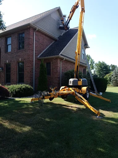 Reaching the high peaks safely is part of our job. We use the right equipment to ensure every inch of your siding gets the attention it needs.